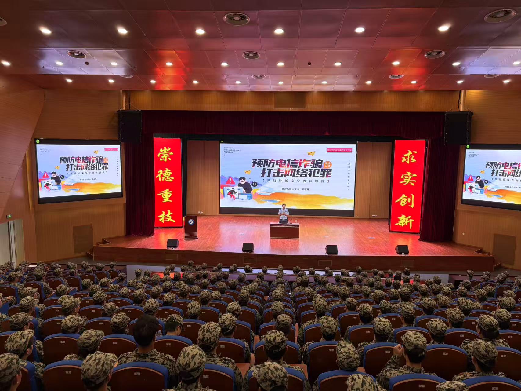 为增强新生安全意识和应急自救能力,筑牢校园安全防线,我校在2025级新生军训期间特邀属地交管部门、派出所民警和学校法律顾问,为新生带来一系列内容丰富、形式多样的安全宣传教育活动,并成功组织了地震应急疏散演练。