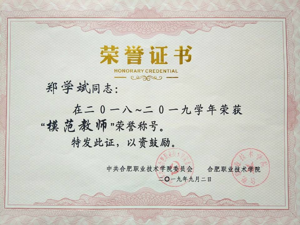 2021年郑老师被评为合肥市“最美科技工作者”称号。